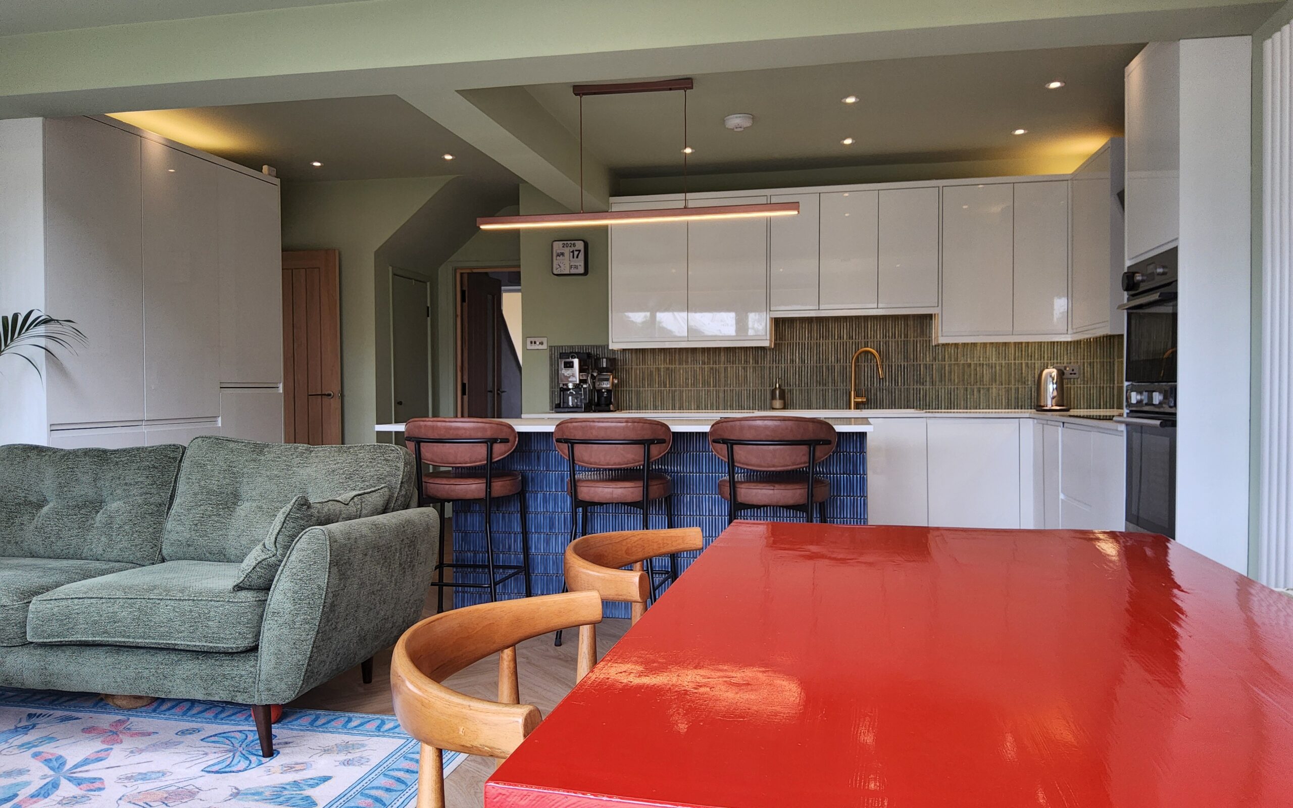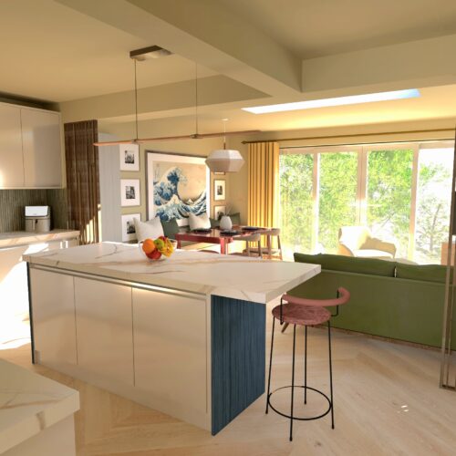 The result is a balanced and inviting open-plan space that feels both considered and effortless. It reflects the clients’ personality while supporting the practical needs of daily life, creating a home that is as functional as it is visually engaging.